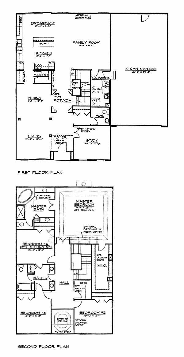 Ample space throughout is the main thrust of this plan! From the time you enter the foyer and rotunda, through the main floor until you pull your vehicles out of the garage, that allows for four cars, you know that this home is something special.