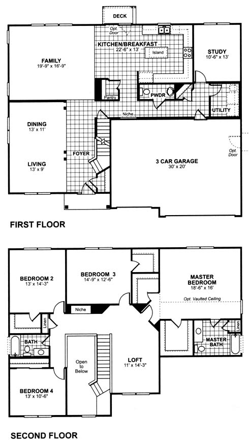 4 Bedrooms Plus Loft; 2 ½ Baths; 9-Foot First Floor Ceilings; First Floor Study; Spacious Family Room: Island Kitchen with Breakfast Nook; Living Room and Dining Room; 2-Story Foyer; Walk-in Closets; 3 Car Garage; Basement