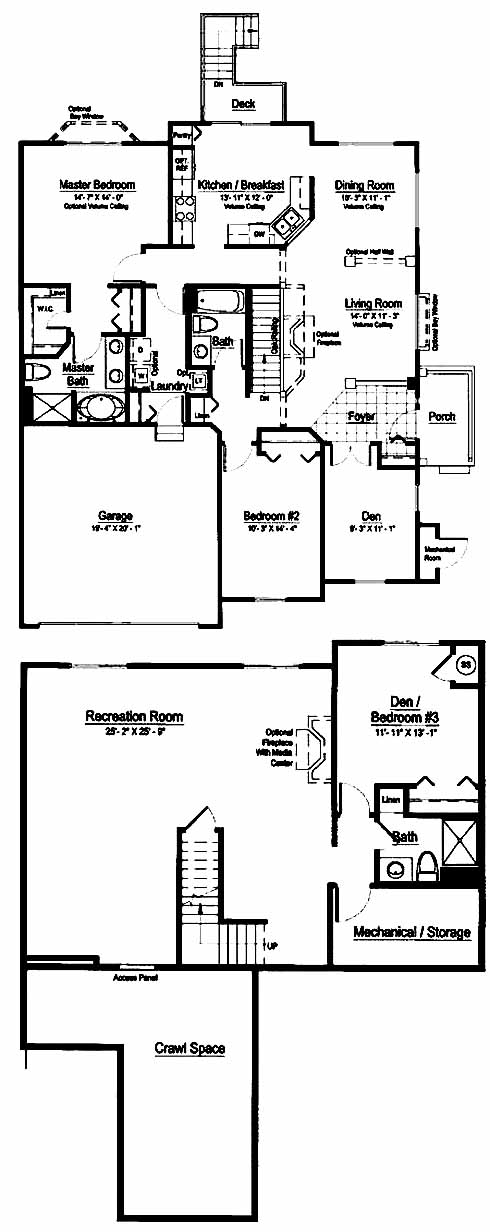 2193 Sq. Feet Spacious interior floorplan with two bedrooms and den or three bedrooms, three full bathrooms and 2 car attached garage. Formal separate dining room includes arched detailing. Large living room includes vaulted ceiling and available fireplace. Master Suite includes large deluxe bath and walk-in closet.