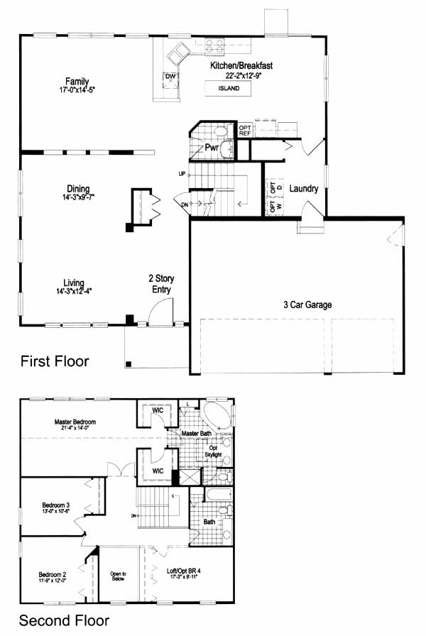 Three bedrooms with a loft or optional fourth bedroom, 2-1/2 baths, kitchen with island, family room, formal living and dining rooms, three-car garage.