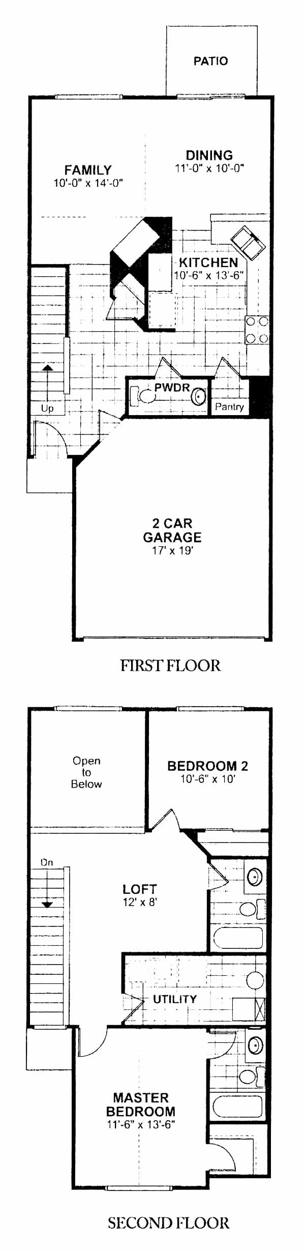 Two-story home that features 9' first-floor ceilings and a loft overlooking the family room below. Master bedroom with private bath, dining room that looks out to a patio and a 2-car garage.