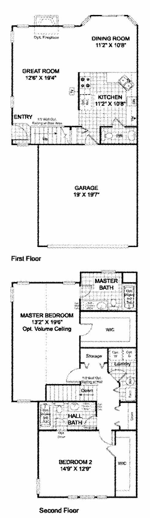 Two story Town home with 2 bedrooms, loft, 1 1/2 baths, 9 ft first floor ceilings, Great room with breakfast bar and optional 3rd bedroom with bath in lieu of loft.