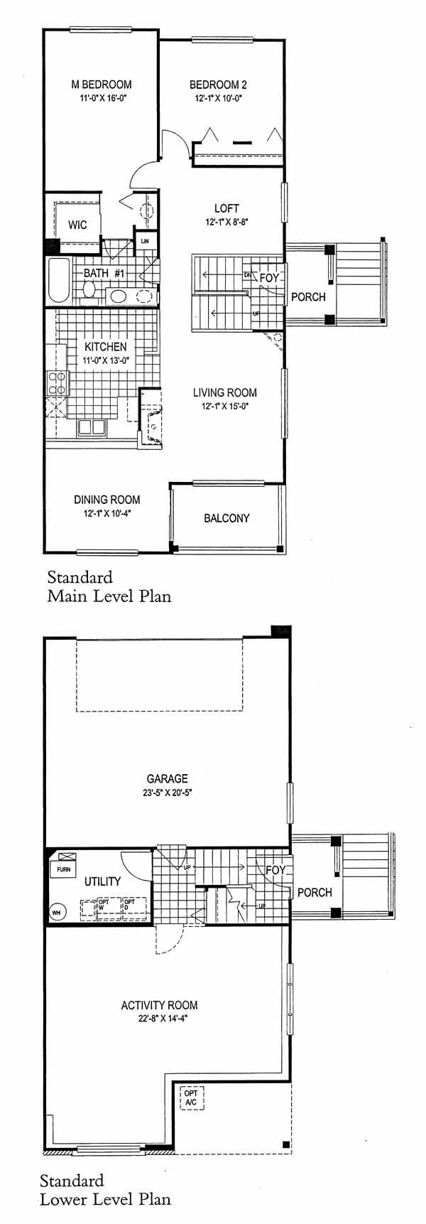 Two bedrooms, 1 bath, living room, dining room, kitchen with breakfast area, loft, finished lower level, two-car garage.