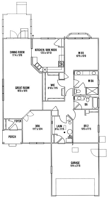 2 bedrooms, 2 baths, den, great room, dining room, kitchen, w/nook, laundry/mud room, 2 car garage.