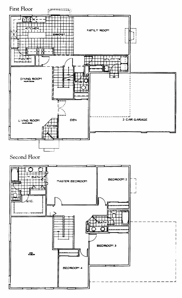This two-story home features 4 bedrooms plus den, 2 1/2 baths, attached 2 or 3 car garage(depending on homesite), 9-foot first floor ceiling and partial basement. A formal living room and dining room with volume ceilings, den, family room, kitchen with island counter, walk-in pantry and breakfast nook. A master bedroom suite with oversized walk-in closet and private master bathroom with linen closet and compartmentalized water closet. 3 additional bedrooms with wardrobe closets, full hall bath with compartmentalized water closet and hallway linen.
