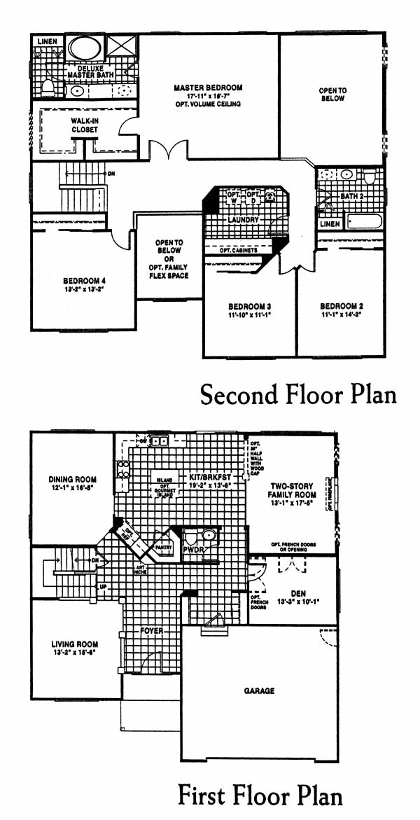 This executive four bedroom, 2 1/2 bath home has a two-story foyer, formal living room and formal dining room separated by an elegant center staircase with large landing and optional window seat; secluded first-floor den, gourmet kitchen with family-sized island and large walk-in pantry; breakfast area with optional bay; large two-story family room; large master bedroom with huge walk-in closet; convenient second-floor laundry room with loads of storage space; good sized secondary bedrooms; optional loft; fully landscaped homesite; attached two-car garage and basement.