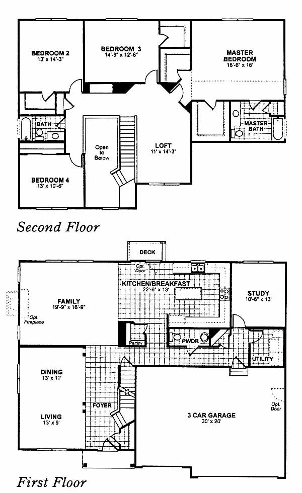 4 bedrooms plus loft; 2.5 baths; 9' first floor ceilings; First floor study; Island kitchen with breakfast area; Living and dining rooms; 2-story foyer; Walk-in closets; Bonus room; Basement; 3-car garage.