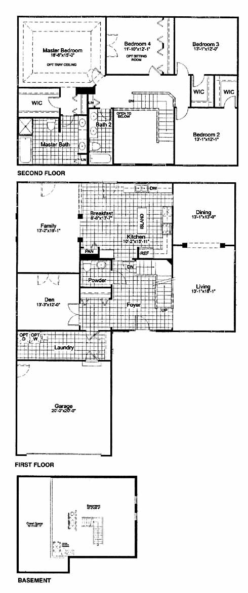 2,924 sq. ft. two-story home with four bedrooms, two-and-one-half baths, living room, dining room, family room, den, breakfast area, basement and an attached two-car garage.