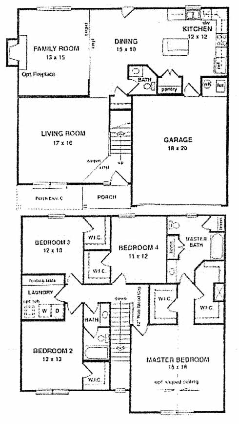 This carefree two-story home has lots of room to move around. The large family room, huge formal living room, formal dining area, and adjacent kitchen are all open and airy. All four upstairs bedrooms have walk-in closets. Other features include a convenient upstairs laundry room, kitchen pantry and a master bedroom with full bath and two walk-in closets.