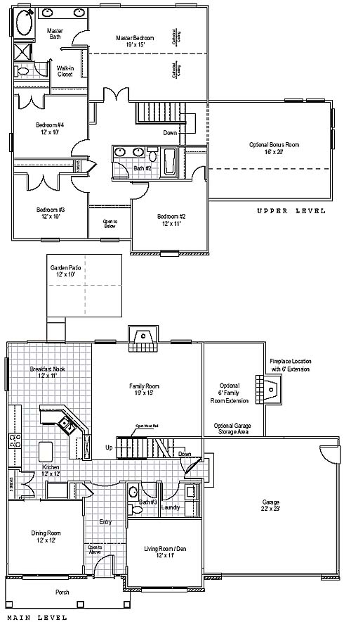 The 627 is a home with a lot of appeal and many options to personalize to your familys needs. The two story entry gives the dramatic greeting expected in a home. The stair case is toward the center of the home instead of right off the foyer. There is a formal dining room and formal living room on either side of the foyer. The kitchen has a nice custom feel with an angled island where the sink is overlooking the family room. The family room is open with a cozy fireplace. You can opt to add a 10 family room extension, or extra space in the garage for a tandem garage. The living room could be converted to a den. The upstairs has four bedrooms, an elegant and large master bedroom with upgraded bath. There is an optional bonus room that adds tremendous space and versatility to the second level of the home. Is built with a partial basement as well.