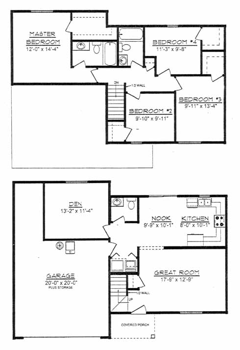 This two-story home is offers 1,630 square feet, 4 bedrooms and 2 1/2 baths. The main floor includes a sizeable great room, large den, 1/2 bath, and open kitchen with nook. The upper level is complete with 3 or 4 bedrooms including a master suite with a private bath and huge walk-in closet, plus a full shared bath in the main hallway.