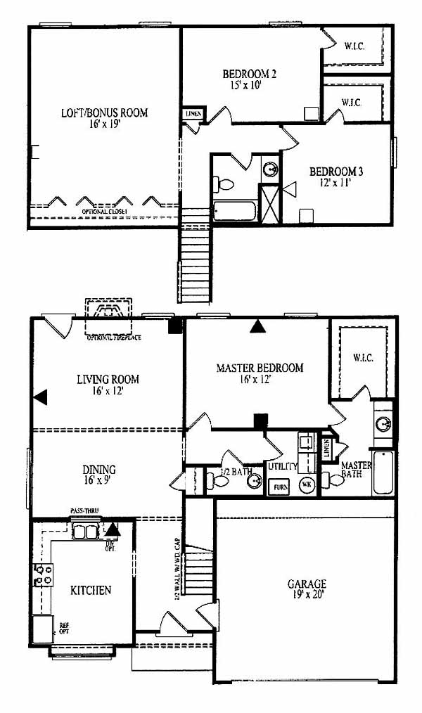 As soon as you come in the door you'll be greeted by the kitchen on your left. Next you'll come to the living and dining room area with optional fireplace which access's the master bedroom and bath with a walk-in closet. On the second floor you'll find the 2nd and 3rd bedrooms with walk-in closets, hall bath and a massive loft/bonus room.