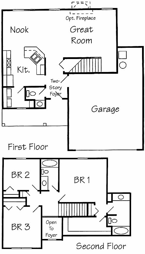 This two-story floor plan offers a traditional home with some stylish touches. Features include a striking two-story foyer, first-floor utility room with pantry space, large master bedroom closet and an angled kitchen sink that overlooks the nook and spacious great room.