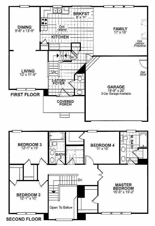 the two-story tiled foyer takes you past the lovely living room and into the kitchen with optional island and breakfast nook. To your left is the dining room and to your right you can access the family room with optional interior fireplace. On the second floor you'll find the 2nd, 3rd and 4th bedrooms, hall bath and the master bedroom and bath with dual vanities and a walk-in closet.