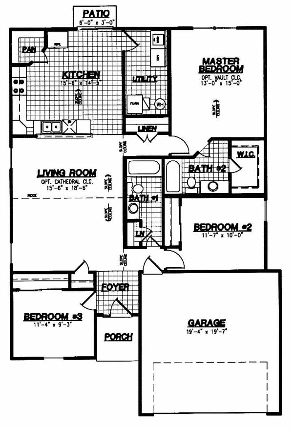 As you enter the home the tiled foyer takes you pas the the 2nd and 3rd bedrooms with hall bath just before you come to the living room with optional cathedral ceiling and fireplace. From the living room you can access the master bedroom with bath and walk-in closet and the tiled kitchen with pantry and wrap around counter.