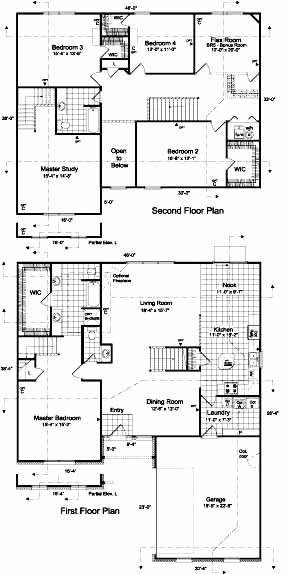 This is an awesome and unique floor plan. The Master suite is downstairs with a staircase leading from the bedroom up to a Master Study. The Master Bath is elegant and has a large closet. The remaining three bedroom and flex room (optional bedroom) are located upstairs. The home has an elegant two story foyer with an overlook area from above. There is a separate formal dining room and a large living room open to a kitchen and nook. This is a perfect home for those who like the master separate or for perhaps an inlaws quarters. The side load garage gives it a special charm on the outside.
