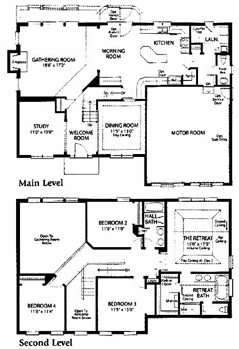 This model features an open staircase leading to the second floor balcony overlook. A comfortable arrangement of the kitchen, morning room and spacious gathering room provide a perfect spot for family enjoyment. A secluded second floor ownerÂ’s retreat showcases a large walk-in closets and a luxury bath. The second floor includes three additional bedrooms and a full bath. An optional Bonus Room can be selected for additional living space. Side load garages available on a limited number of home sites.