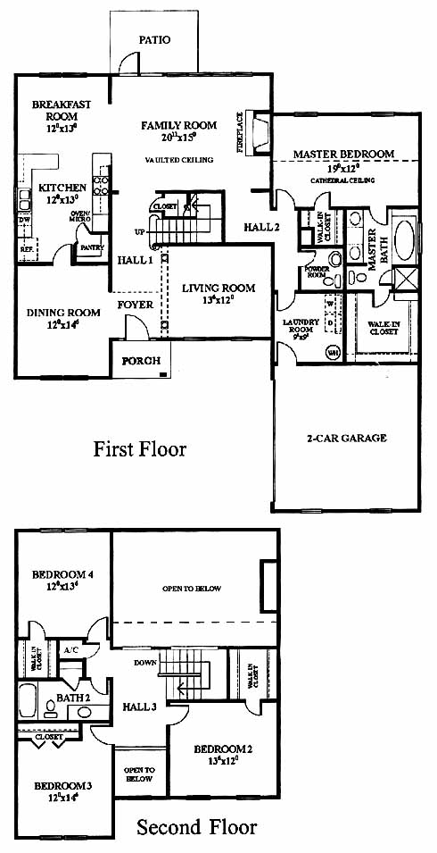 Gorgeous first-floor master bedroom includes a cathedral ceiling, his and her walk-in closets and master bath with double vanity, tub and separate shower. Formal dining and living rooms are to either side of the foyer entrance. The family room at the back includes patio access and a fireplace, making it a popular gathering spot on chilly nights. The breakfast room leads to the kitchen with pantry. The second floor has three more bedrooms, a shared bath and views of the family room below.