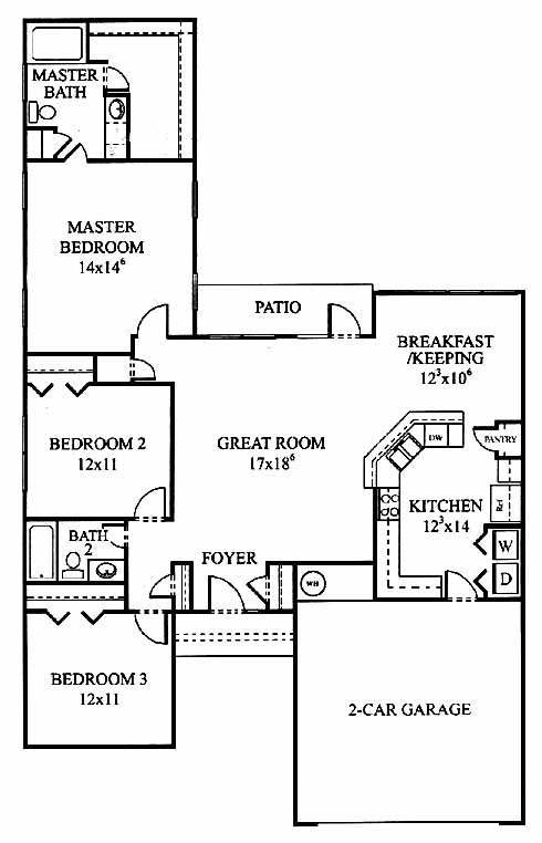 The spacious great room with patio access is sure to be the centerpiece of this beautiful home. The breakfast room nearby leads to the kitchen with pantry and wrap-around countertop bar. The master bedroom in the back includes an oversized walk-in closet and master bath. Two more bedrooms at the front of the home share a bath between them.