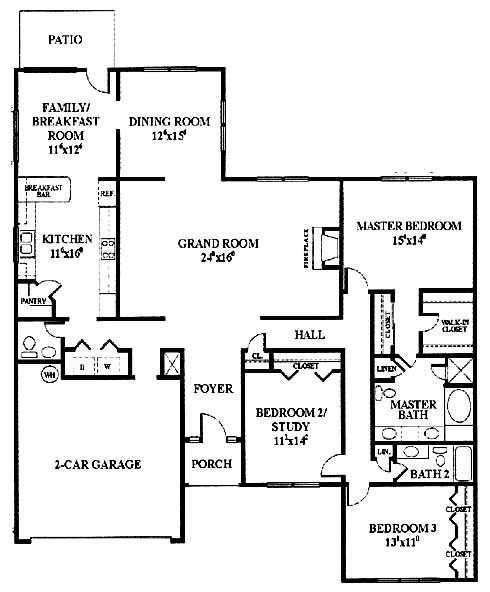 Beautiful home featuring a spacious grand room with fireplace where you can comfortably entertain guests. The formal dining room in the back leads to the breakfast room with patio access. The kitchen with walk-in pantry and breakfast bar has plenty of space for preparing meals. The master bedroom includes a walk-in closet, a second closet and a master bath with double vanity, tub and separate shower. Two more bedrooms share a bath. An optional sunroom is available.