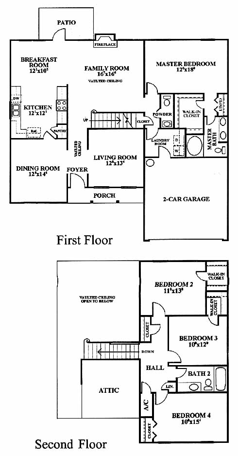 First-floor master bedroom includes a walk-in closet, a second closet and a master bath with double vanity. The second floor has three more bedrooms with ample closetspace that share a bath. Formal dining and living rooms are located on either side of the foyer entrance. The family room with fireplace is perfect for entertaining guests and includes a vaulted ceiling and patio access. The breakfast room leads to the kitchen with pantry.