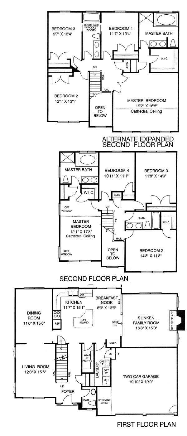 These floor plans are semi-custom. The Patrick Henry II has a traditional floor plan with excellent use of space. The kitchen, dining, breakfast nook and sunken family room are located on the back side of the house. The bedrooms are spacious and the master suite has a cathedral ceiling with a luxury bath. These floor plans can be modified to meet the demands of your tastes and family.