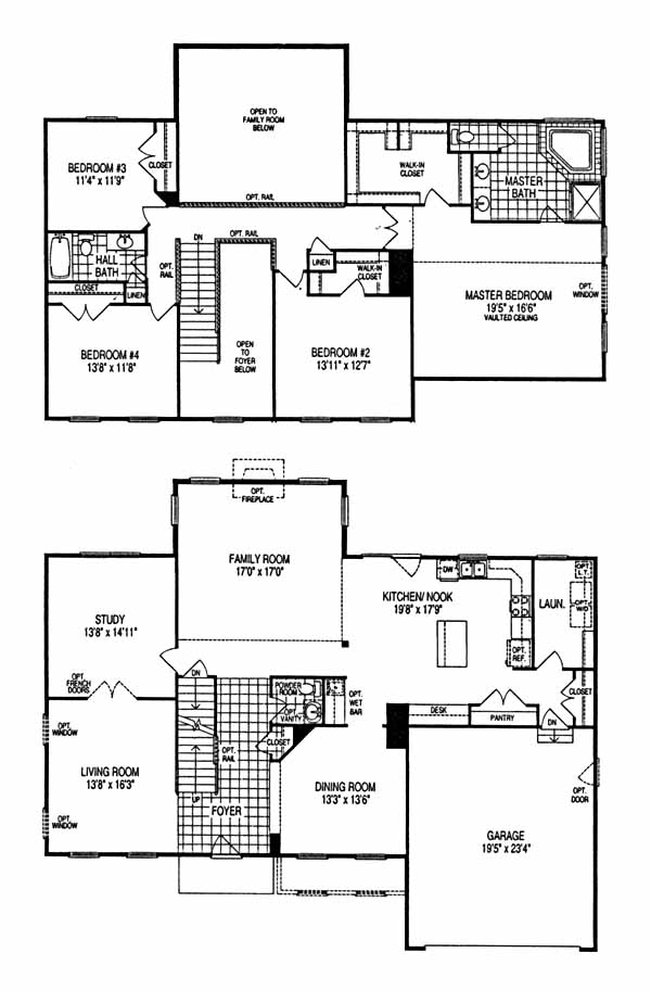 The Southhill II has a large foyer which directly faces the family room and fireplace. The kitchen and laundry are off the family room and the dining room faces the front of the house. The study and living room flank the side of the house providing nice quiet living space. The master suite features his and her walk-in closets, a large bath with optional fireplace, and a corner tub.