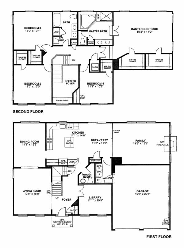 A classic comfortable design with a first floor library and spacious family room. The second floor master suite is huge featuring two large walk-in closets and a spacious garden bath. Each of the three other bedrooms has its own walk-in closet. This is a great design and value.