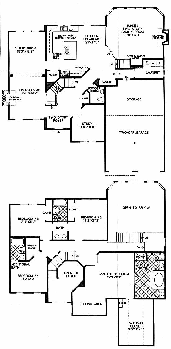 This home has an attractive spiral staircase and a spacious kitchen/breakfast room/family room combo.