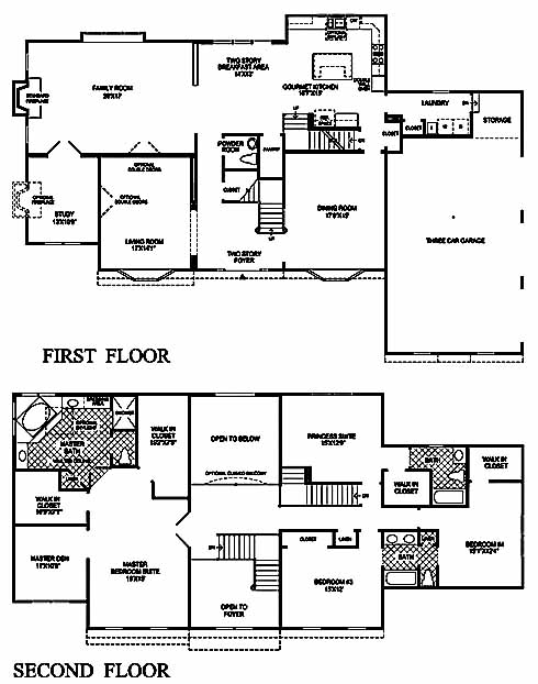 The two-story foyer flanked by the living and dining room takes you into the two-story breakfast area. To your left you'll find the family room with standard fireplace and to your left you have the gourmet kitchen with island. On the second floor you'll find the princess suite with bath, 3rd and 4th bedrooms with Jack and Jill bath and the stunning master suite with den and master bath with dual vanities.