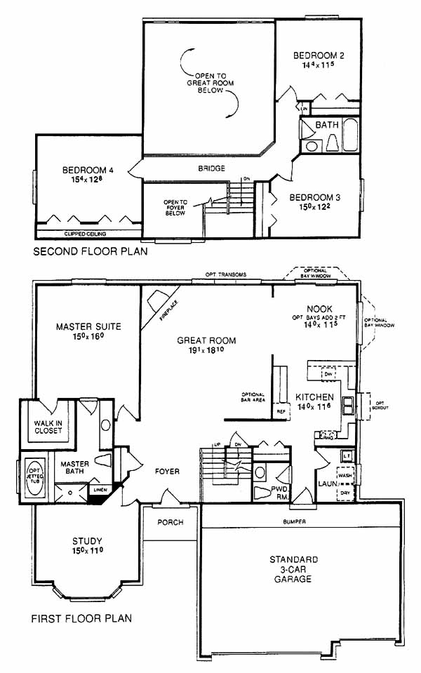 Split level home with large great room includes fireplace. Optional bar area also located in the great room. Private study at the front of the home. Master suite with walk-in closet and private bath. First-floor laundry near the three-car garage. Second floor provides a view of the great room and foyer below. Three bedrooms share a bath.