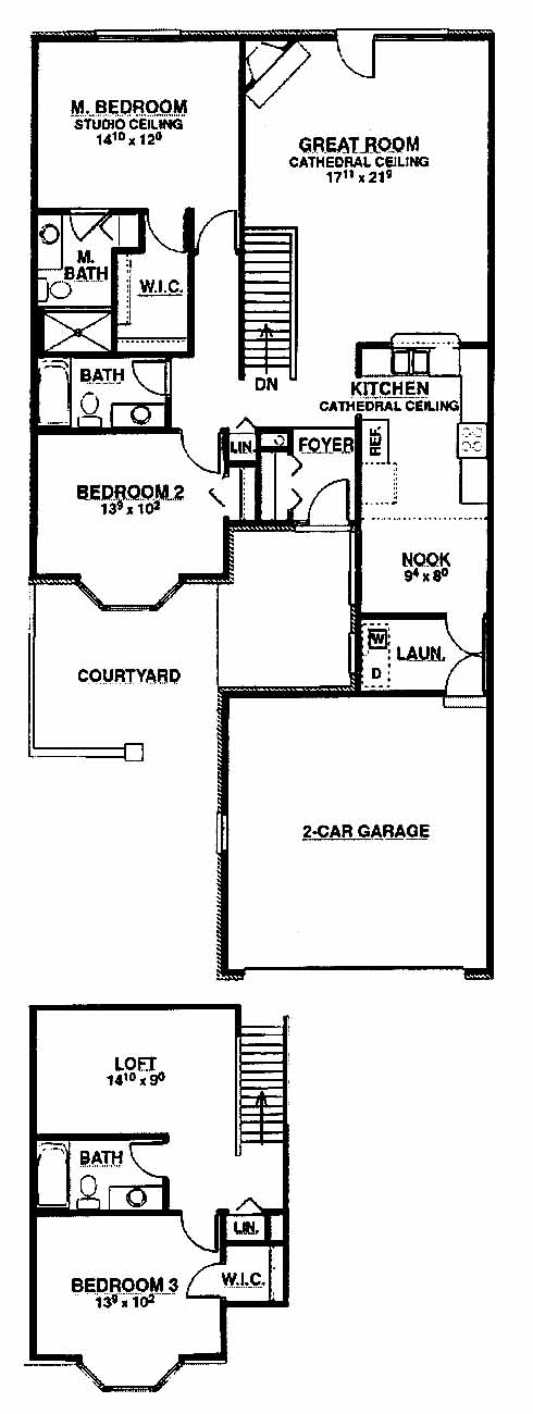 This condominium home has a courtyard entrance that leads you to the front door. The kitchen to one side of the foyer entrance has ample counterspace for preparing meals while opening into the nook area. The great room with fireplace is a nice spot to gather on chilly nights. The master bedroom in the back has a walk-in closet and master bath. A second bedroom at the front has a bay window and close access to a bath. The second floor has another bedroom with walk-in closet. A bath and loft round out the top floor.