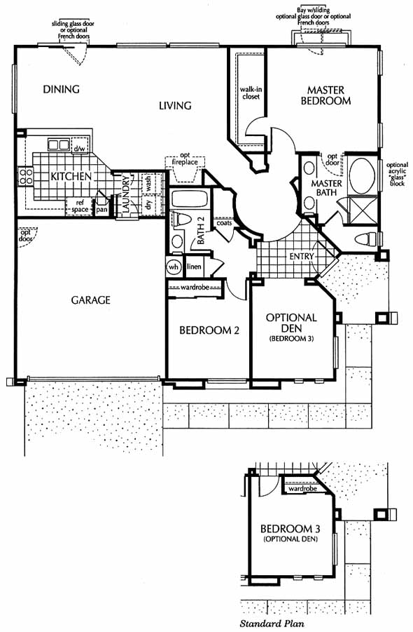The spacious entry of this single story gives you a warm inviting feeling and the option of a den in place of the 3rd bedroom is perfect for that home office. Generous wardrobe space in the elegant master suite as well as generous kitchen pantry storage and general electric appliances package are only a few of the items included.