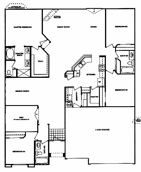 The tiled entry takes you past the 4th bedroom, den and dining room just before you come to the great room with fireplace. From here you can access the kitchen with nook, 2nd and 3rd bedroom and the master bedroom and bath with a walk-in closet.