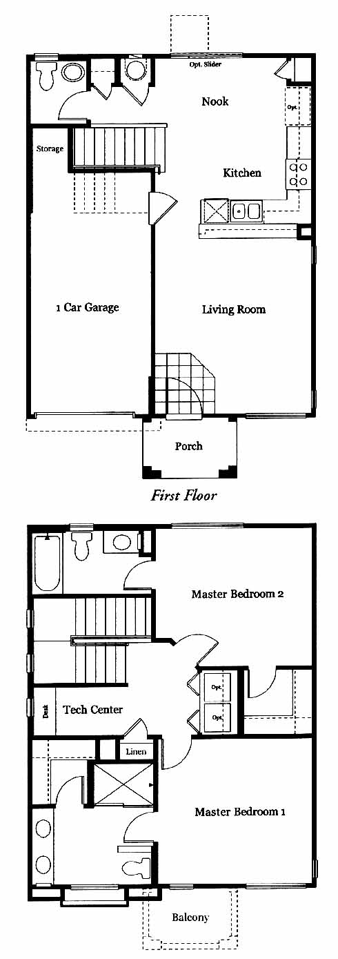 The living room greets you as you enter the home. Next is the kitchen with nook and pantry. Upstairs you have the 2nd bedroom with bath and the massive master bedroom and bath with dual vanities.