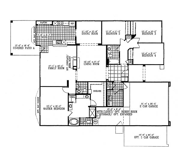 The rock and stucco exterior and intricate roof design harmonize beautifully on this model. The covered entry leads to a grand living room that flows to a family room and formal dining room. The kitchen has a nook and a door leading to the covered patio in the rear yard. The master suite is completely separate from the secondary bedroom areas and features her sink with vanity, his sink, a bathtub, shower and private commode.