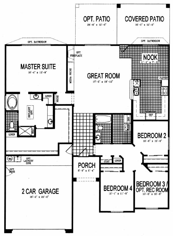 Stunning and very attractive home features spacious great room that leads to a covered patio and adjoins the large wrap around kitchen with pantry and nook. Master suite has a huge walk in closet and deluxe bath with amenities including a garden tub, seperate shower, and twin vanities. Three other bedrooms share a full bath, and one bedroom can be converted to a recreation room. A perfect combination of good looks and functionality, great for any family.