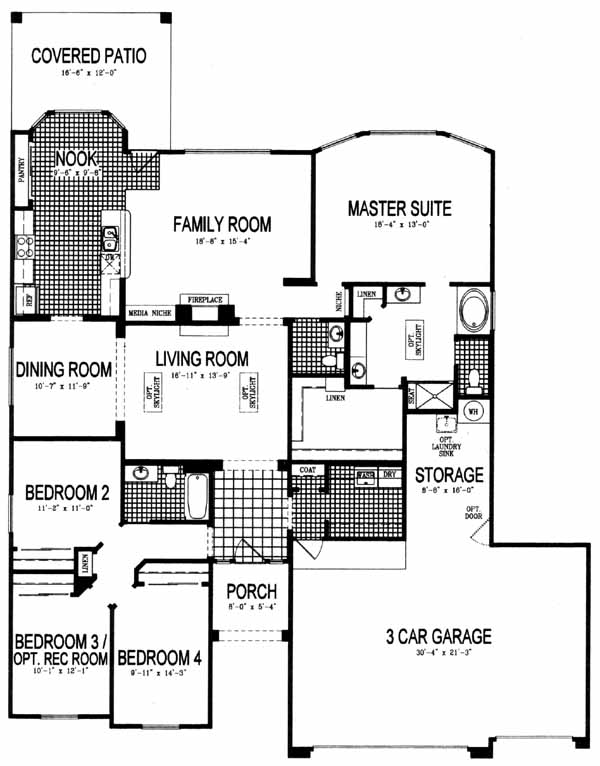 Beautiful home in a gated community and nearby to areas of shopping, recreation, religion, as well as schools. Home features a large living room with skylights optional, family room that adjoins a gourmet kitchen with dining room and a nook that leads out to a covered patio. Master suite looks out upon the back through bay windows and has a deluxe bath with garden tub, seperate shower, dual seperate vanities and spacious walk in closet. Three other bedrooms share a full bath, with one bedroom able to be converted into a recreational room.