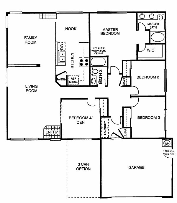 Close to shopping and schools. This one story floor plan features direct entry into kitchen from garage. Separate laundry room with linen closet and hall storage. Master bedroom has walk-in closet and second and third bedroom have option to joined as one to make large bunk room good for home office or play room.