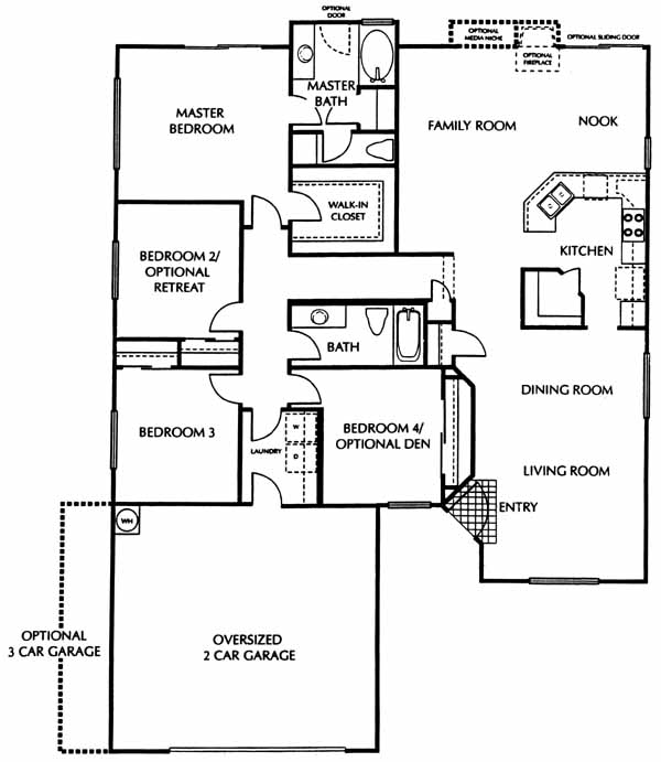 The angled front entry leads to a dining/living room with optional vaulted ceiling. The family room and master bedroom both have vaulted ceiling options as well.