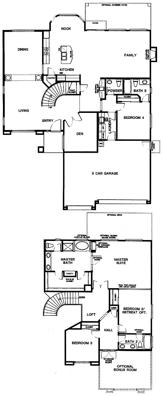 This large two story home feels like a custom home with its exceptional interior detailing and open airy floor plan. Very roomy home with many optional/custom items including optional 2nd bedroom or master retreat, optional bonus room, spa jets in master bath tub, optional decorative gas appliances, corian or granite counter tops, and Low E, bronze, or grey tinted glass windows. A gourmet kitchen with corian counter tops, recessed lighting and built in oven. Beautiful master suite with optional retreat and large walk in closet, roman tub and many other features and options.