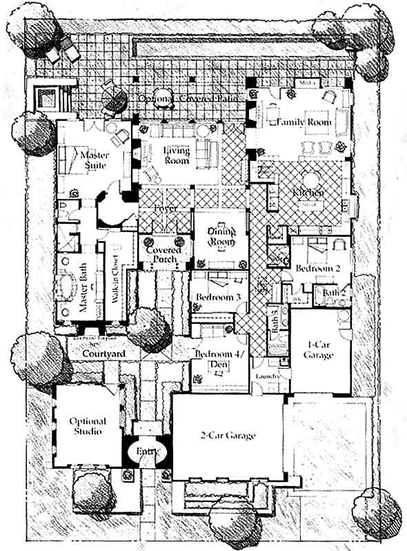 This gaint single story executive home offers discriminating home buyers luxury living with elegant appointments and custom finishes throughout. The huge open courtyard and open airy floorplan makes entertaining a breeze. Many customizing opportunities include numerous floor plan variations, home office, den, library, additional fireplaces, spa tub, covered patio, balcony, wet bar, and many other upgrades. On site architects and professional interior decorators are available to assist you in designing your home, and customizing your home to suit your individual tastes.
