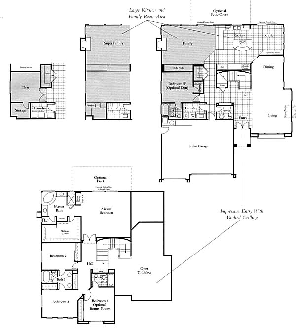 Master planned gated community with unrivaled attention to detail and a sense of purpose. Impressive waterscapes, private street and colorful desertscapes, you'll find it all. Very impressive design and quality interior. Ceramic tile throughout the entrance, hallway, kitchen and nook. Center island and custom maple cabinetry in the kitchen. The family room has a fireplace and exits to the rear patio. Living and dining areas are combined for a dramatic effect. Master retreat has a media niche, fireplace or optional deck. Optional bonus room.