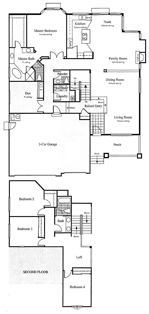 Community benefits include a championship golf course, and in the near future it will include a fitness and swim center, clubhouse and restaurant, park, tranquil walking trails, bike paths, and panoramic views. Space and elegance take on a whole new meaning in this stunning home with a raised entry, high volume ceilings, partial wall between the family and formal areas, large kitchen with a center island. Lots of windows for sun drenched rooms. Den or fitness area. Landscaping in the front and back.