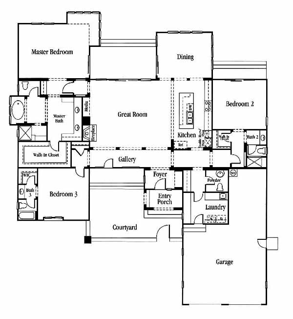 Lot premiums and extensive upgrades are included in the price. Single story home with a courtyard and Clerestory Plan. The kitchen features a double oven and a center island that opens to the great room with a fireplace and the dining room. The master bedroom includes an extension and an oversized walk-in closet through the master bath. The master bath features a garden tub, separate shower and vanities.
