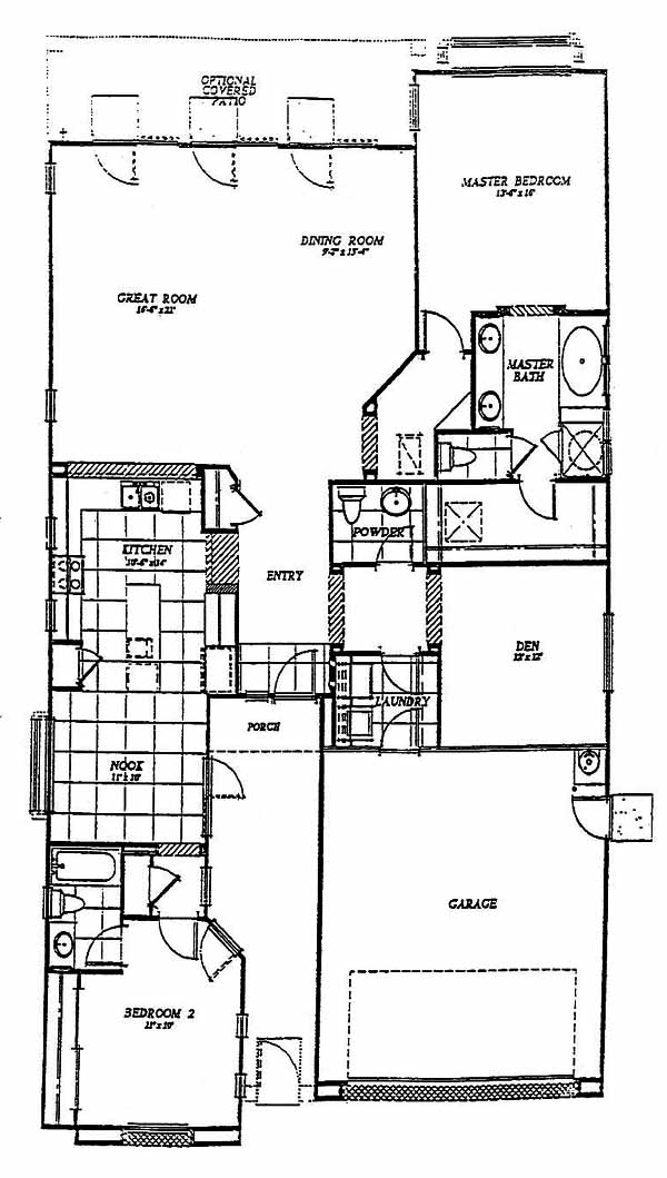 The kitchen features a center island and large breakfast nook. The great room and dining room give this new home an open feeling. The den is a perfect space for an office or crafts. The master bedroom features an oversized walk-in closet through the master bath.