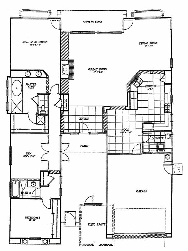 The kitchen features a center island and large breakfast nook. The great room features a fireplace and the dining room gives this new home an open feeling. The den is a perfect space for an office or crafts. The master bedroom features a garden tub and separate shower. Access to the covered patio extends between the master bedroom and the dining room. Flex space is available with separate access.