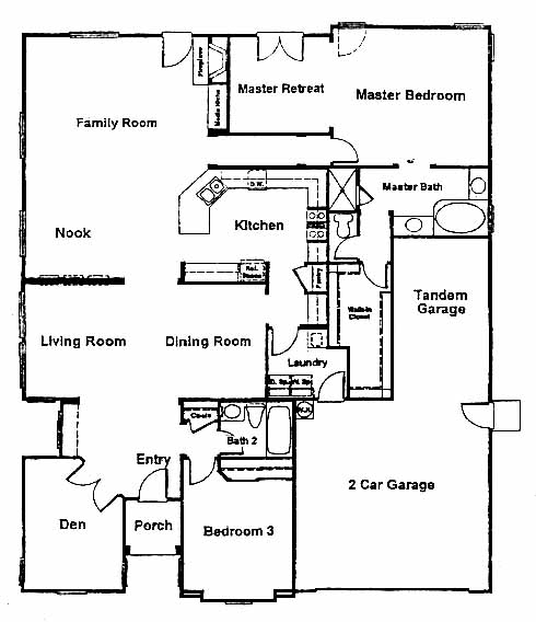 The entry flanked by the den and 2nd bedroom takes you through the living and dining room and into the family room. From here you can access the kitchen with pantry and the master bedroom with retreat and master bath.