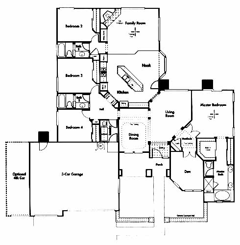 As you enter the home you'll step directly into the living and dining room area. To your right you'll find the den and master bedroom and bath with a walk-in closet. On the other side of the home you'll find 3 large bedrooms and 2 full baths. Kitchen with island and nook and the family room with fireplace.