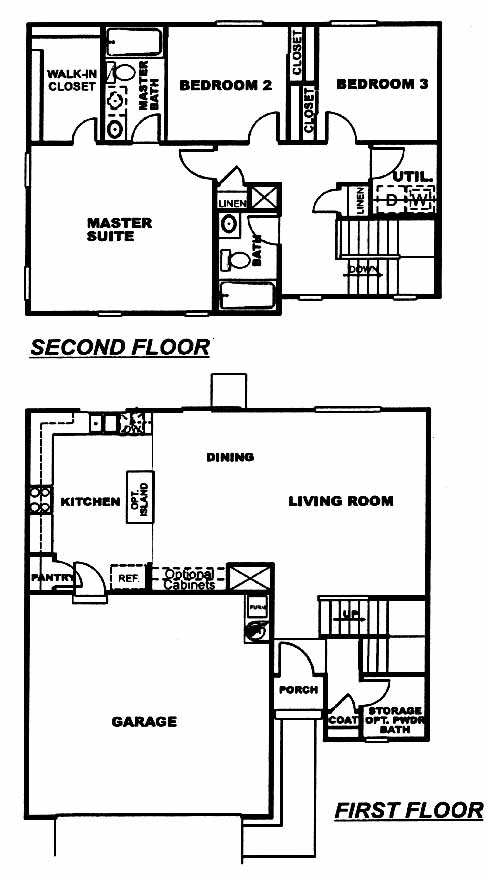 The first floor features a large living and dining room and the kitchen with optional island. The second floor has 2 spacious bedrooms and a gorgeous master suite with bath.